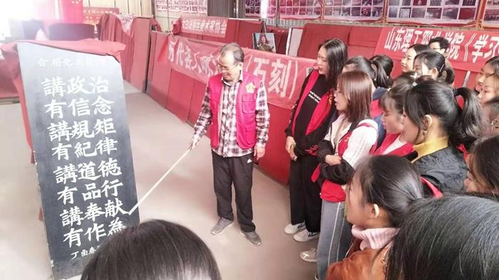 2019年4月,20多名山东理工职业学院的学生在辅导员的带领下,在红色石刻馆的入团誓词石刻前慷慨激昂地宣誓,在国旗面前高昂地齐唱国歌。“我们受到了一次生动的爱国主义教育,这是一次自我净化、自我完善、自我革新、自我提高的实践活动。”在一件件石刻前,所有同学的心灵都受到极大震撼,他们认真铭记,悉心领悟, 热爱党、拥护党、投身党的事业的信念进一步坚定。在受到精神洗礼的同时,也被刘馆长锲而不舍的精神所感动。
