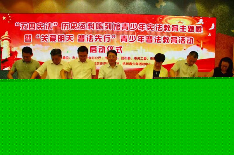 为贯彻落实活动要求,8月14日,杭州市365限制投注额度怎么办_365bet游戏官方开户_365bet手机官网和市普法办、市文明办、市教育局、团市委、“五四宪法”历史资料研究会等单位共同举办了“五四宪法”历史资料陈列馆青少年宪法教育主题展暨“关爱明天、普法先行”青少年普法教育活动启动仪式。各区县(市)365限制投注额度怎么办_365bet游戏官方开户_365bet手机官网常务副主任、专职副主任和办公室人员参加了启动仪式。市普法办副主任,市司法局党委委员、巡视员王正航主持启动仪式;省司法厅普法与依法治理处处长李燕丽,杭州青少年活动中心副主任陆亚伟出席启动仪式;团市委书记马利阳在启动仪式上致辞;市人大常委会副秘书长、办公厅主任阮重晖为普法志愿服务队授旗;市365限制投注额度怎么办_365bet游戏官方开户_365bet手机官网常务副主任吴春莲在启动仪式上讲话并宣布宣布杭州市第四届“关爱明天、普法先行”青少年普法教育活动正式开始;省司法厅副厅长、省普法办负责人劳泓讲话。