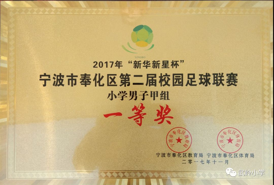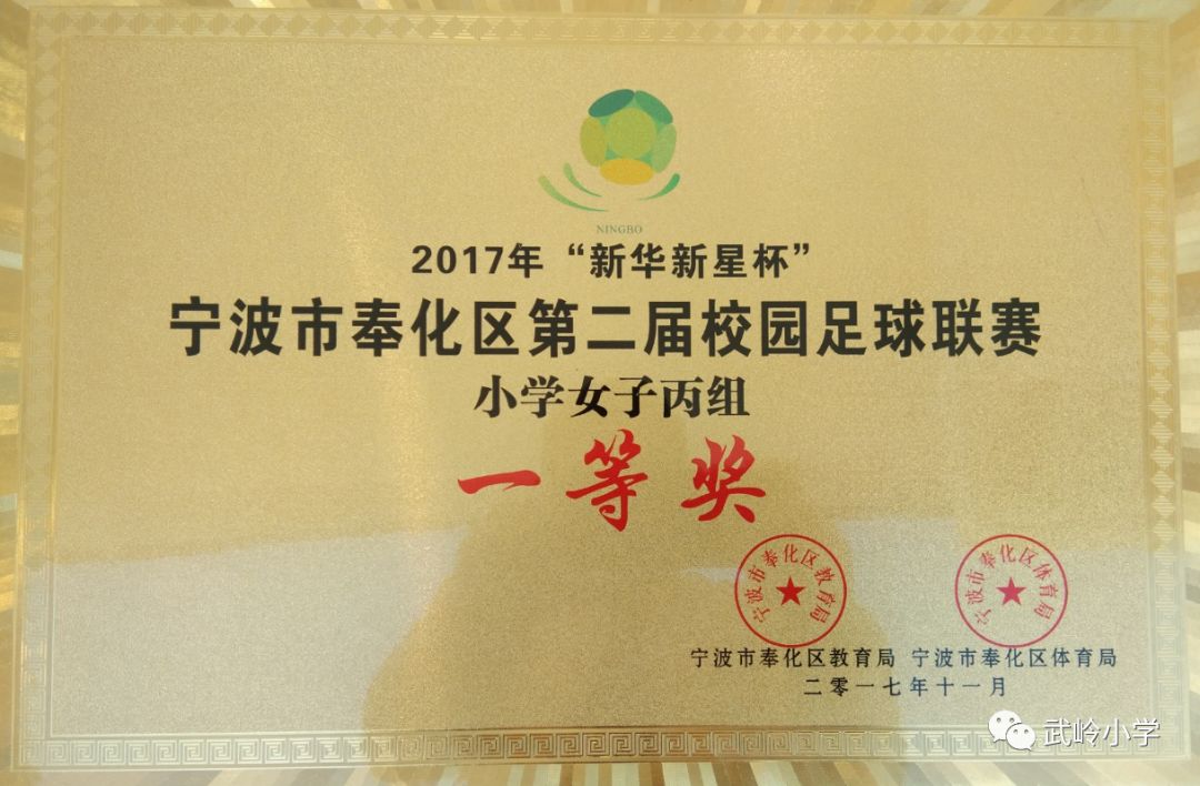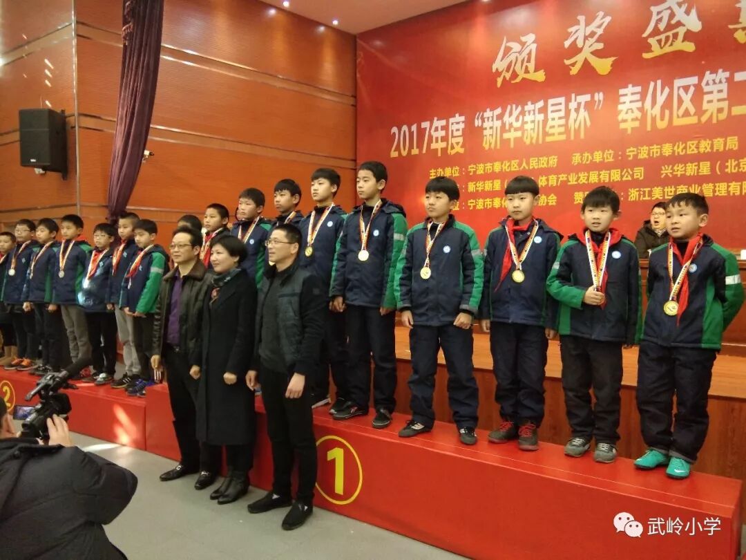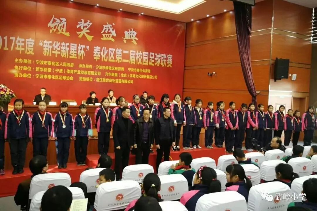 1月9日,“新华新星杯”奉化区第二届校园足球联赛在龙津实验学校举行了颁奖典礼。我校勇夺小学男子甲组冠军并包揽小学女子甲、乙、丙组冠军,成为此次联赛的最大赢家。